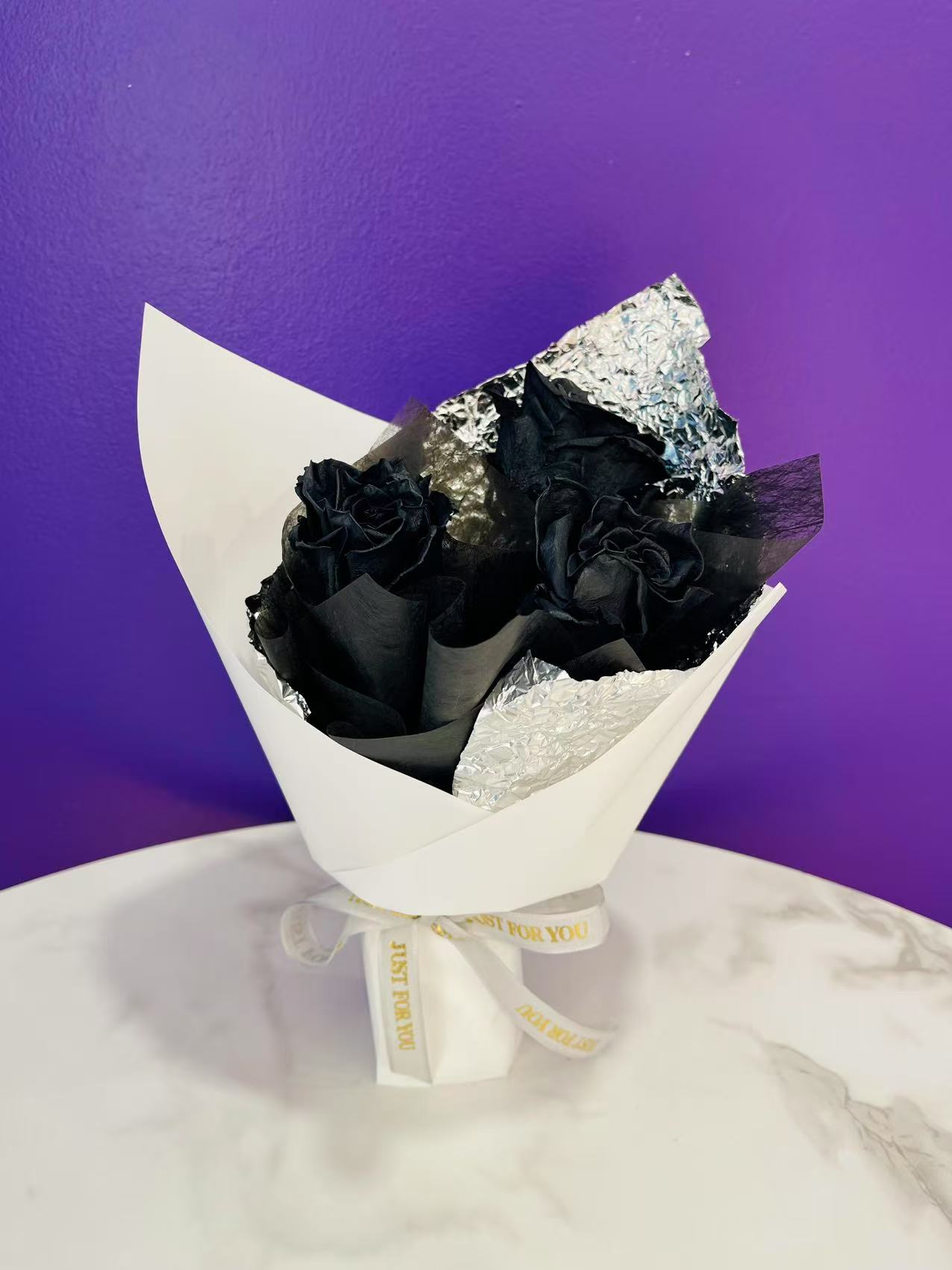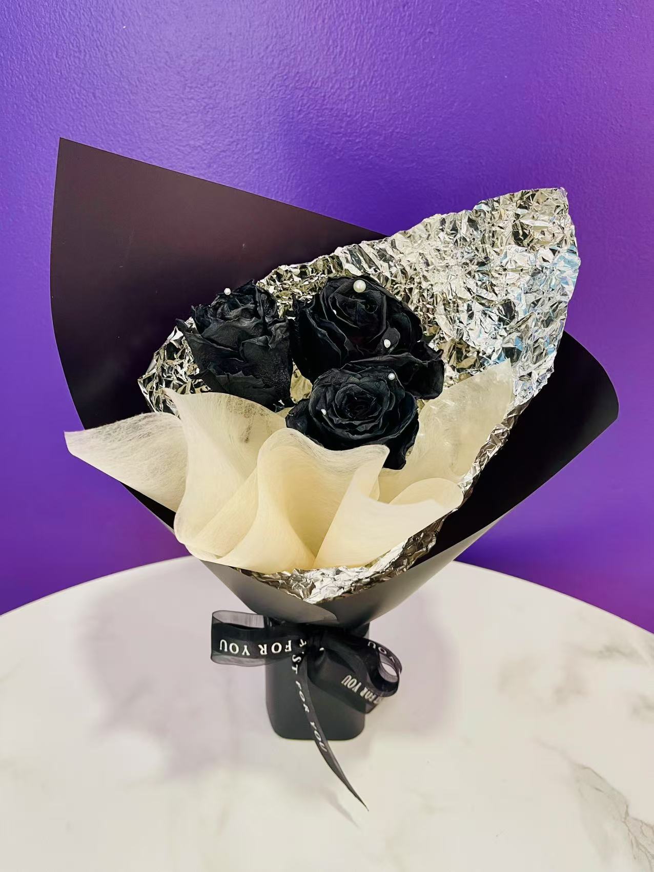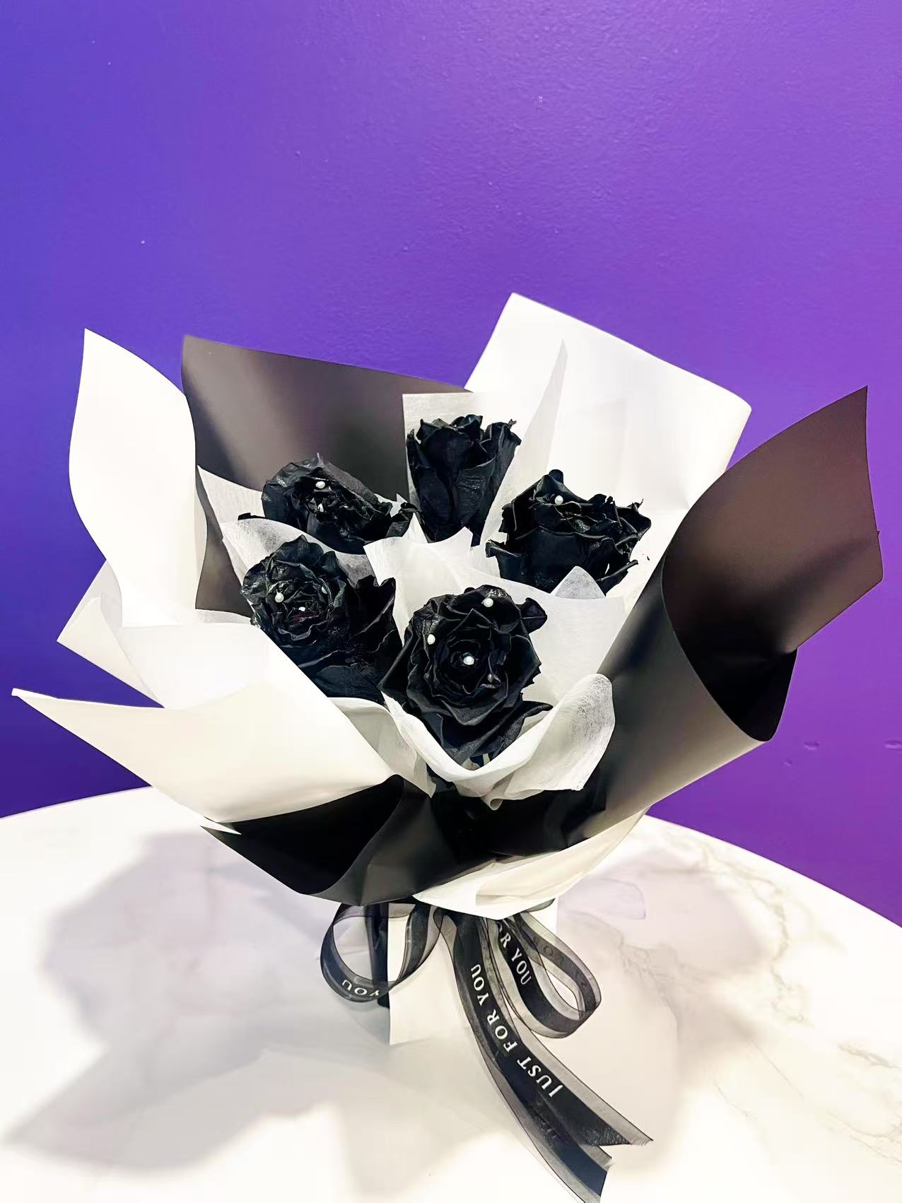 黑玫瑰干花花束-白色包装Black Rose Small Dried Flower Bouquet