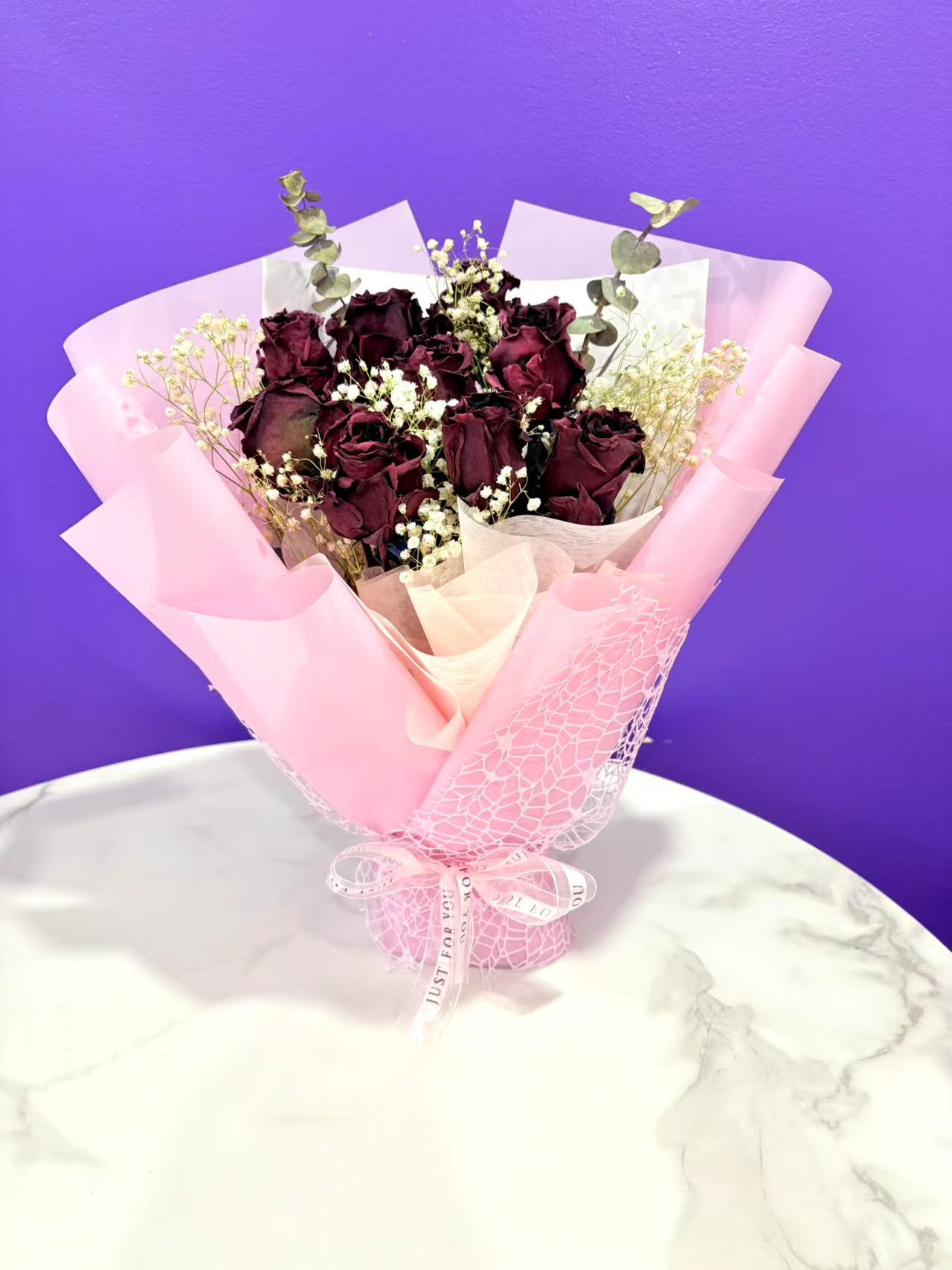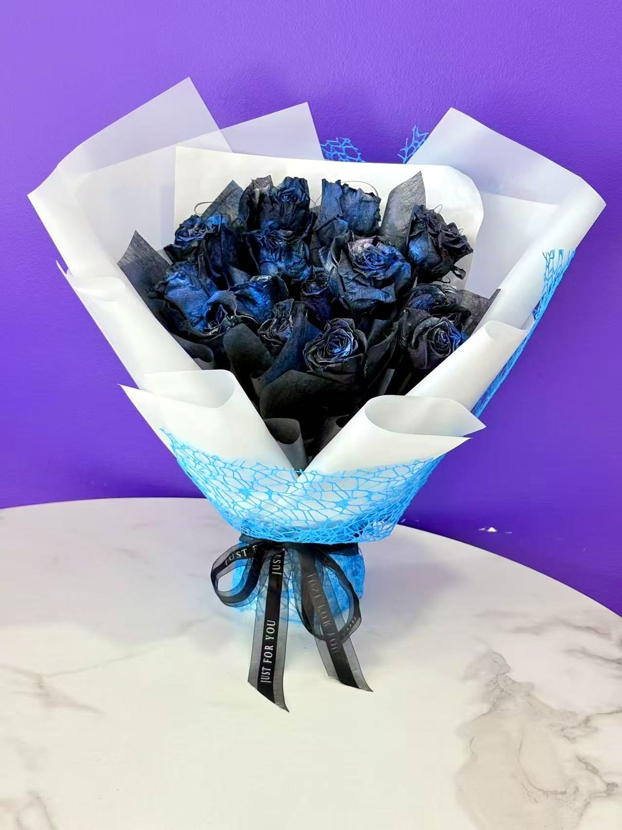 蓝黑色干玫瑰花花束Blue and black dried roses bouquet