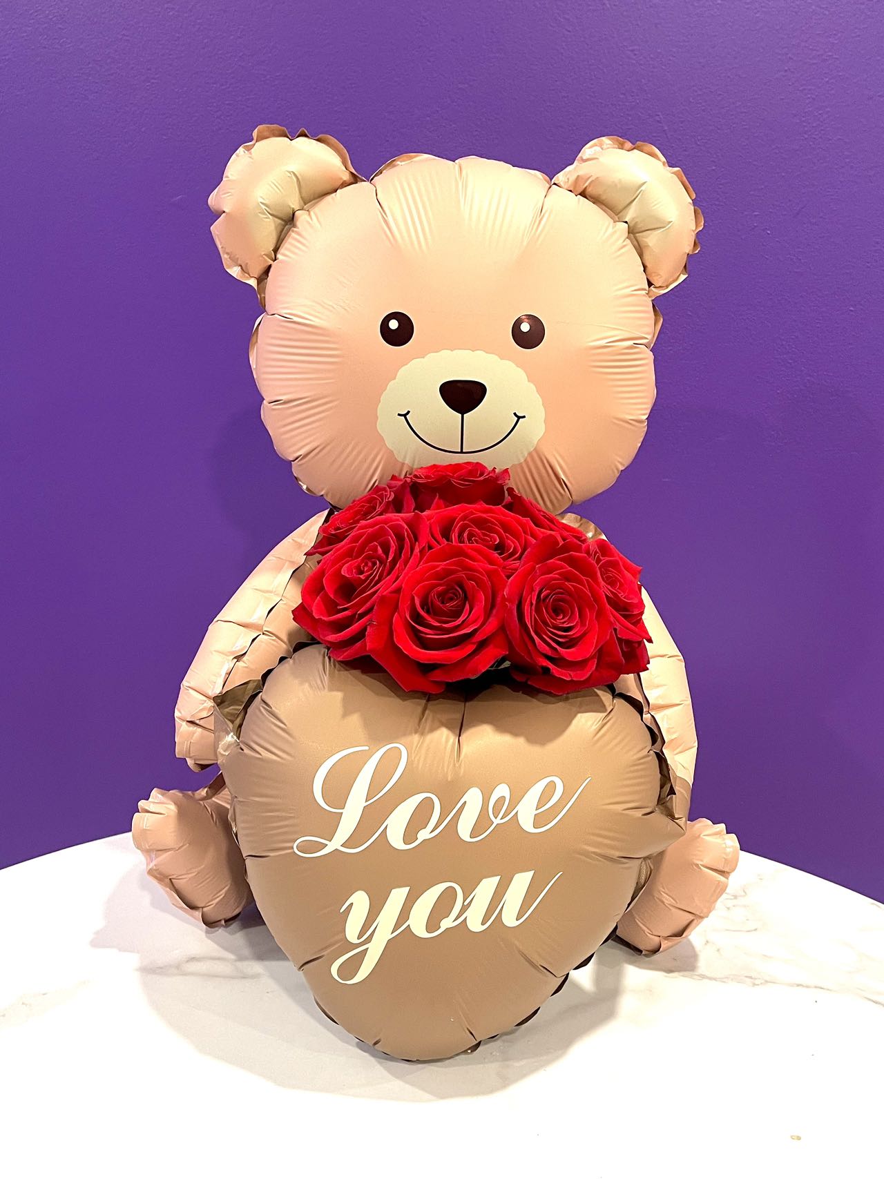 小熊气球抱抱玫瑰花礼物Bear balloon hug rose gift