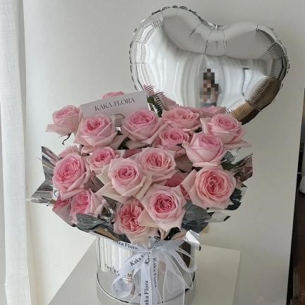 33朵粉荔枝玫瑰抱抱桶花束【Hugs of Love】 – 33 Pink Lychee Roses Hug Basket Bouquet