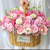【爱的礼物】19朵粉玫瑰混搭洋桔梗花篮【Gift of Love】 – 19 Pink Roses & Mixed Eustoma Flower Basket