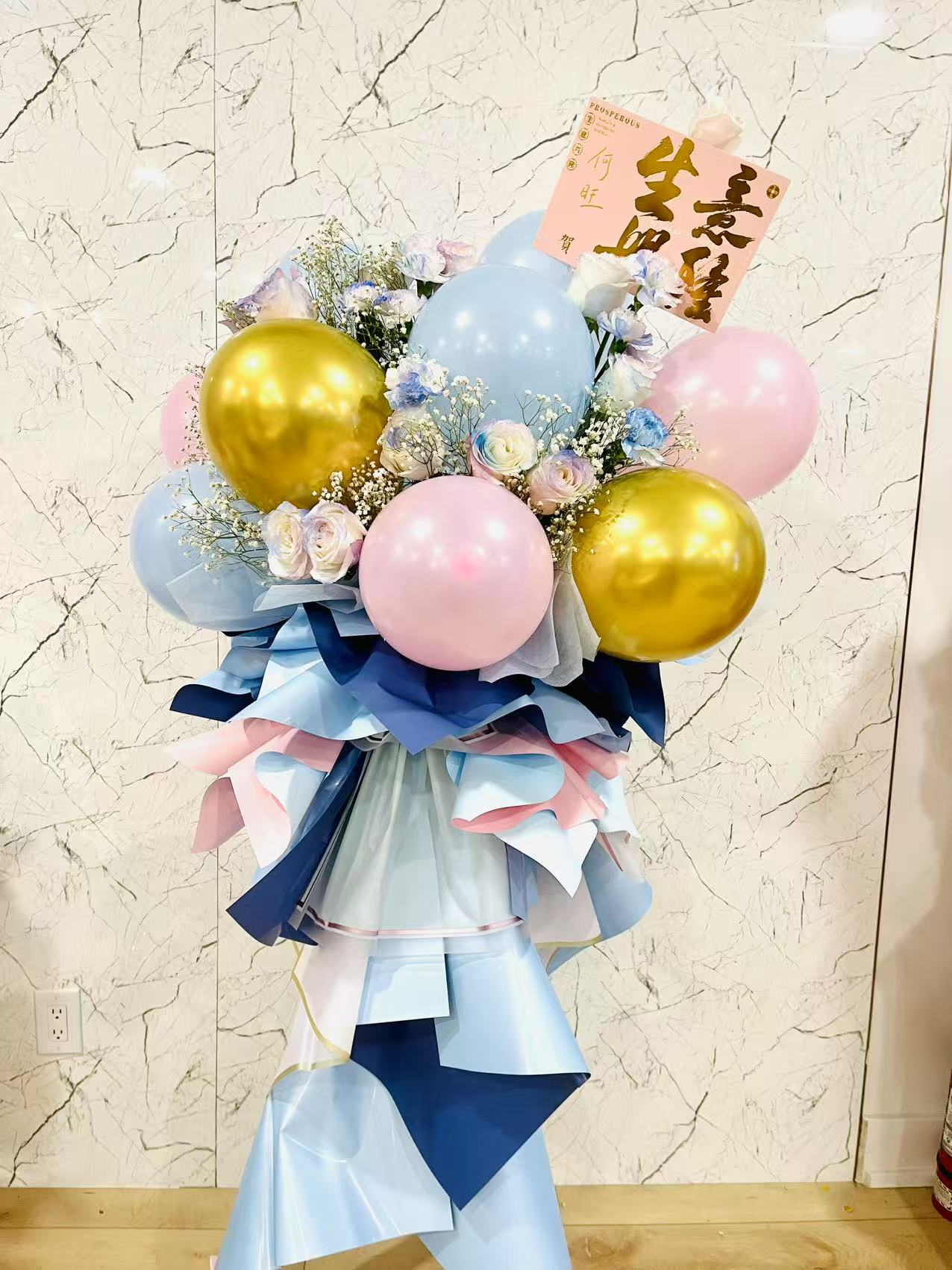 蓝粉色气球开业花篮Blue and pink balloon opening flower basket