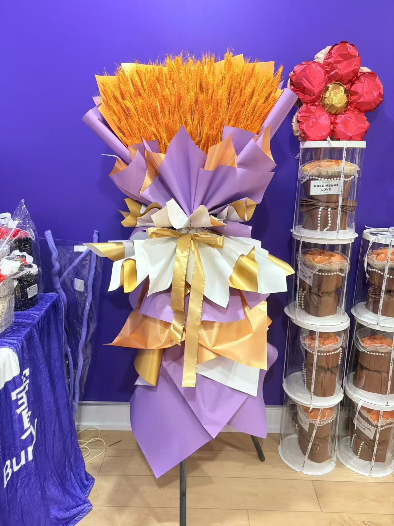 紫色麦穗开业花篮Purple wheat ear opening flower basket