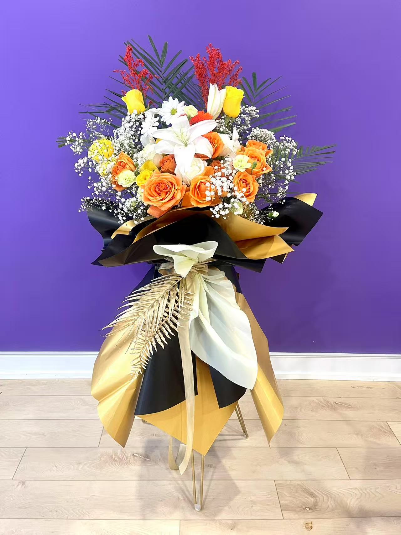 黑金开业花篮Black gold opening flower basket