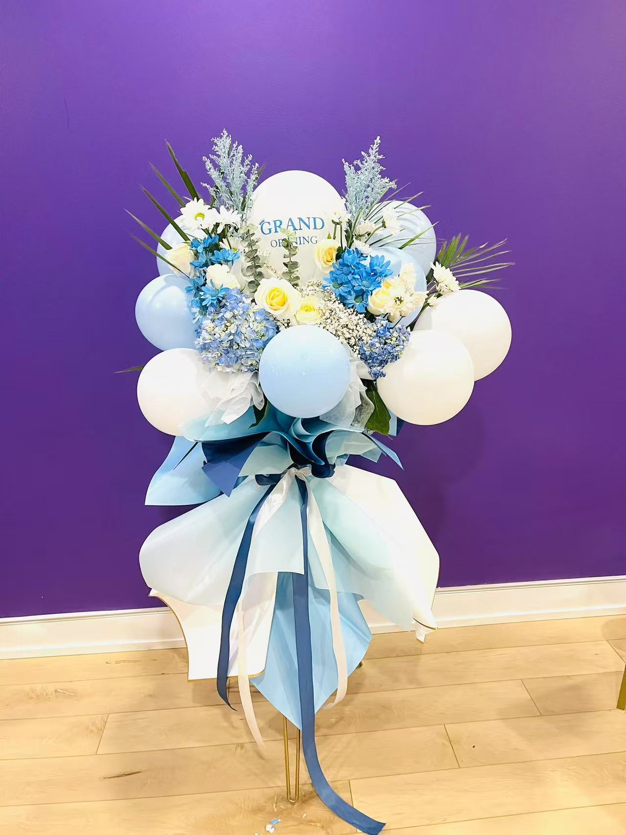 蓝色气球开业花篮Blue balloon opening flower basket