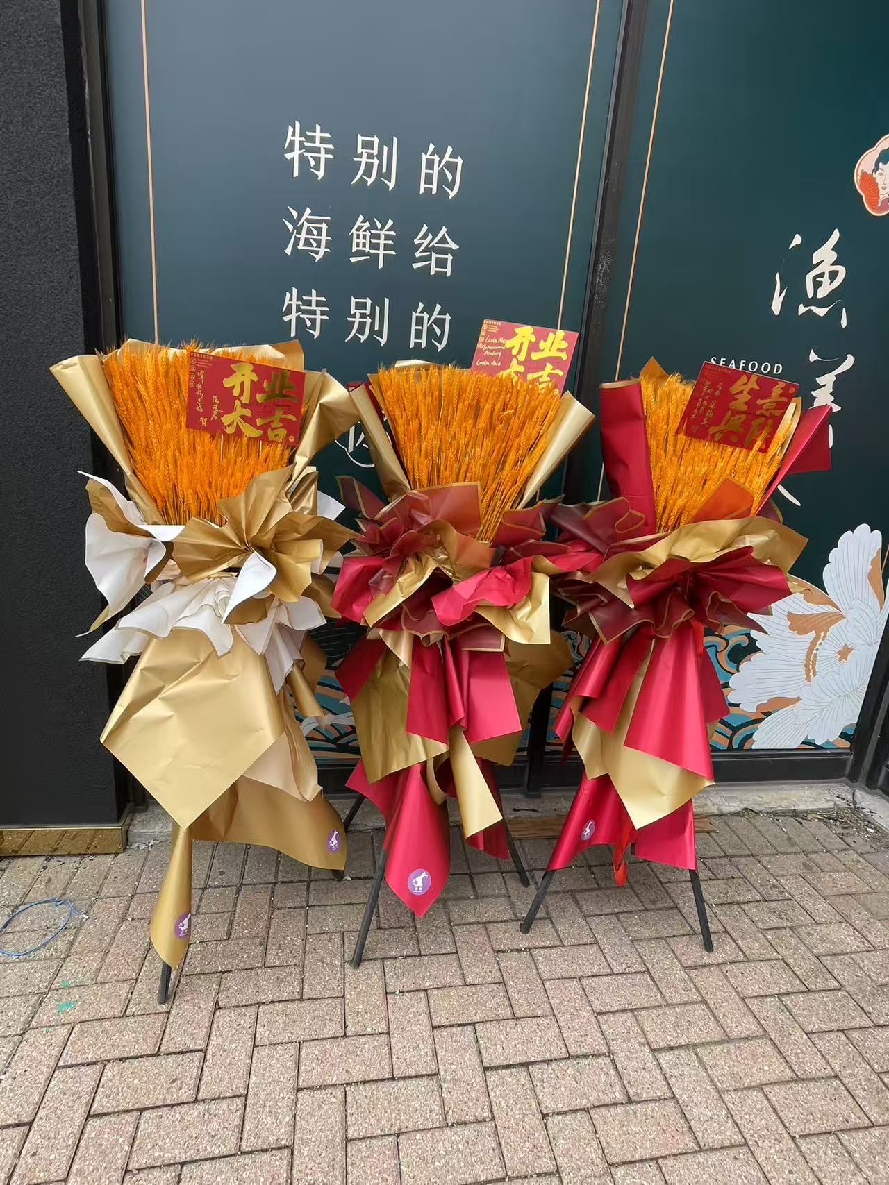 金色麦穗开业花篮Golden wheat opening flower basket