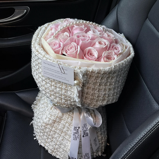 F059【你与众不同】14朵粉色玫瑰小香风花束【Unique Charm】 – 14 Pink Roses Chanel-Style Bouquet