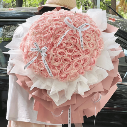 F064 99朵粉雪山玫瑰【Eternal Love】 – 99 Pink Roses Bouquet