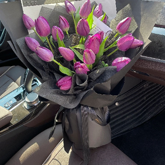 F104【高雅浪漫】39支浪漫紫色郁金香韩式花束【[Romantic Elegance】- 39 Purple Tulips Korean Style Flower Bouquet
