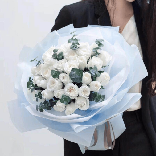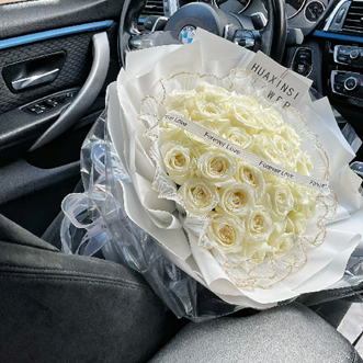 F052【纯白的爱】33朵白玫瑰花束【Pure White Love】 – 33 White Roses Bouquet
