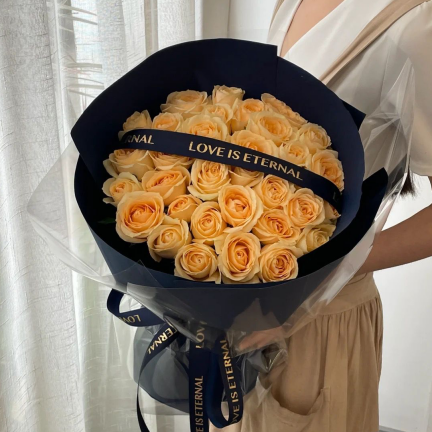 F027【专属告白】33朵香槟玫瑰鲜花花束【Exclusive Confession】- 33 Champagne Roses Bouquet