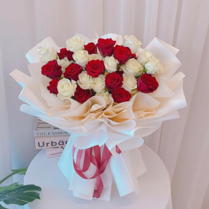 F028【你是我的独一无二】 33朵红白玫瑰混搭鲜花束【You Are My One and Only】 33 Mixed Red and White Roses Bouquet