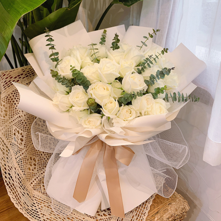 F029【风度翩翩白衣少年】七夕鲜花33朵白玫瑰花束【Dashing Young Gentleman in White] 】33 White Roses Bouquet