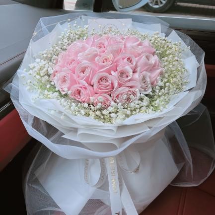 F026【最爱】 19朵粉玫瑰搭满天星鲜花束【My Favorite】 19 Pink Roses with Baby’s Breath Bouquet