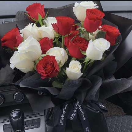 F034【白月光与朱砂痣】19朵红白玫瑰混搭鲜花束【White Moonlight and Cinnabar】– 19 Red and White Roses Mixed Flower Bouquet