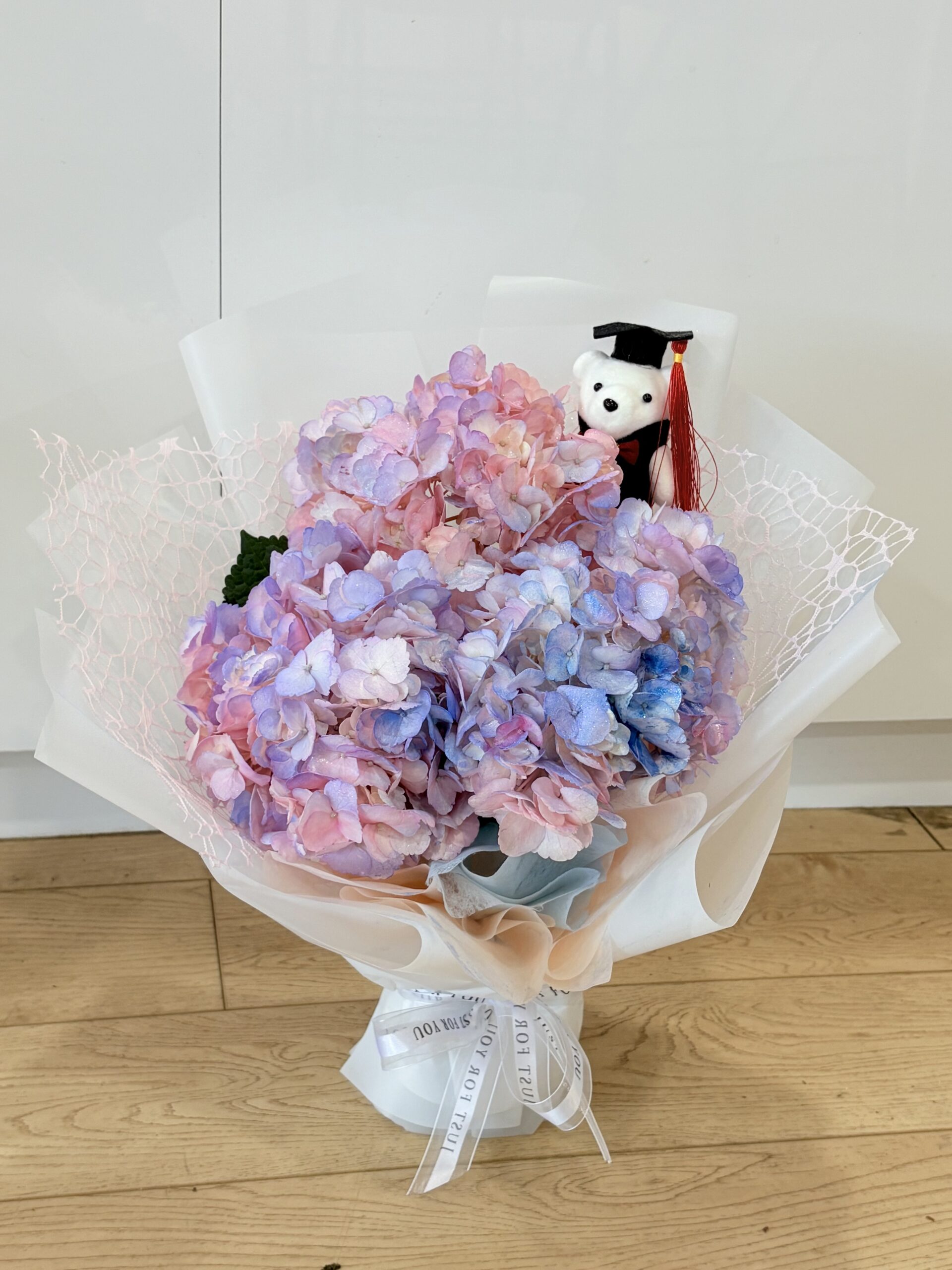 F098 绣球花毕业花束Hydrangea Graduation Bouquet