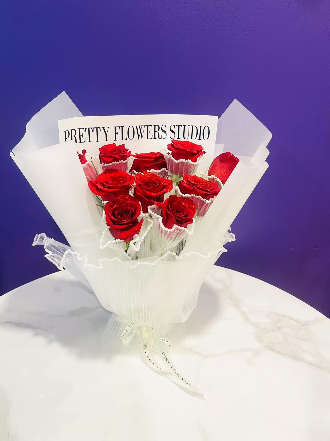 F093 11红玫瑰珍珠花束11 Red Roses and Pearls Bouquet