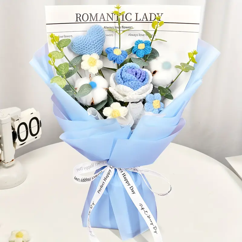 Handmade Crochet Rose Bouquet – blue