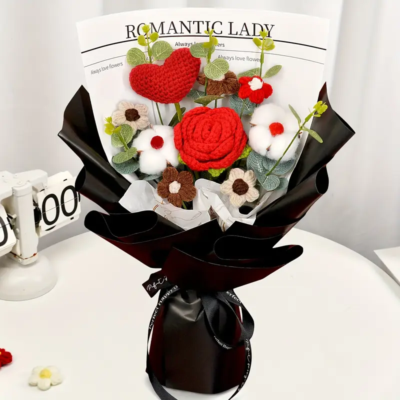 Handmade Crochet Rose Bouquet – Red