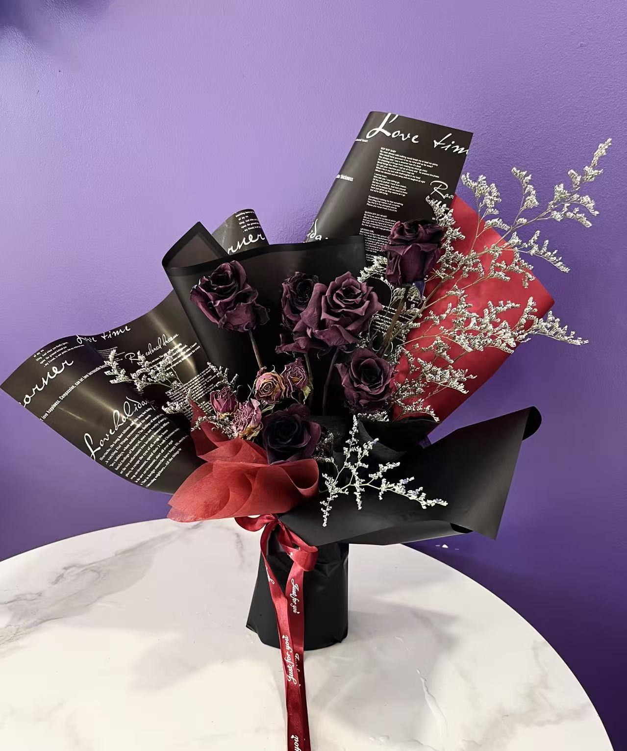 圣诞节黑色干燥玫瑰花束- Dried Black Roses Christmas Bouquet