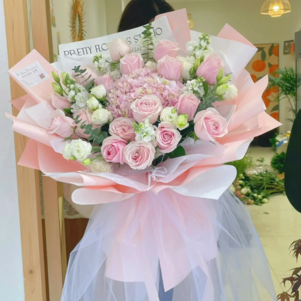 F050【一夕千念】1支绣球粉雪山花束鲜花【A Thousand Thoughts in One Moment】】 – 1 Hydrangea Pink Snow Mountain Flower Bouquet