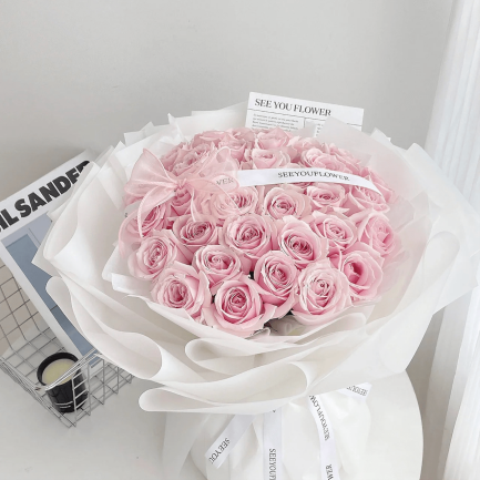 F012【满满的爱】33朵粉雪山鲜花花束花【Full of Love】 – 33 Pink Roses Bouquet