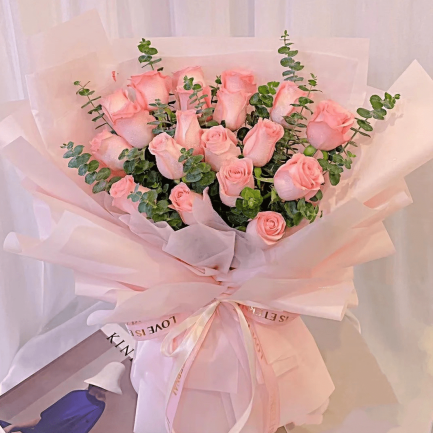 F013【爱意】19朵戴安娜粉玫瑰混搭鲜花花束【Love’s Embrace】 – 19 Diana Pink Roses Mixed Flower Bouquet