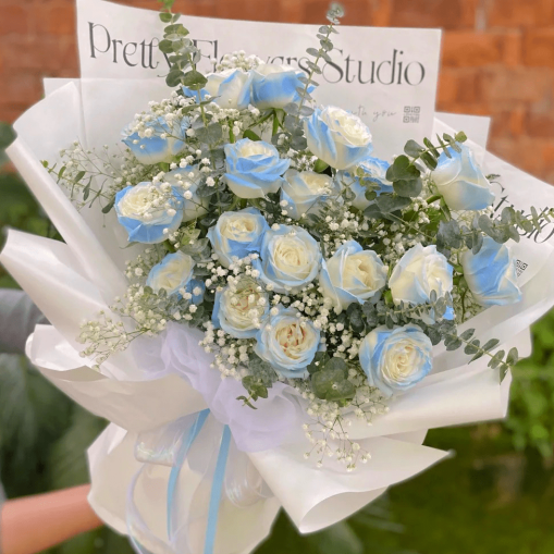 F014【星辰大海】19朵碎冰蓝花束鲜花【Stars and the Sea】 – 19 Ice Blue Roses Bouquet