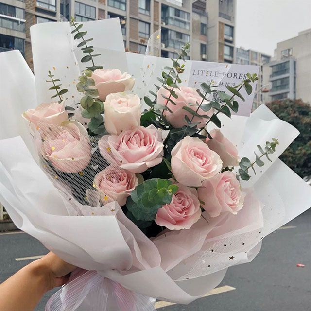 F127 11支粉玫瑰尤加利叶花束