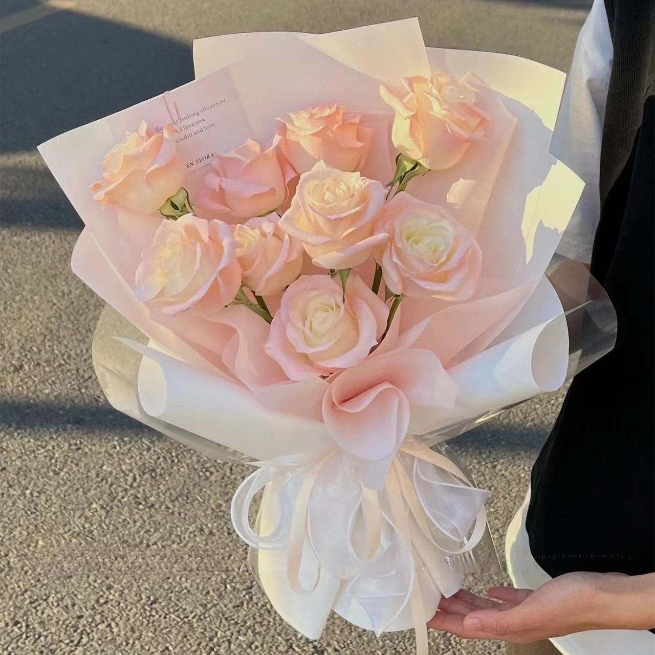 F130 9支粉玫瑰简约花束9 pink roses simple bouquet