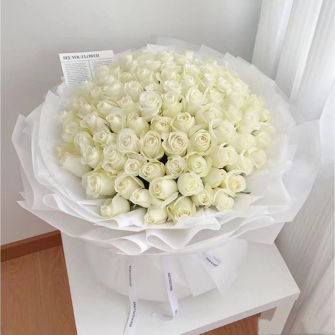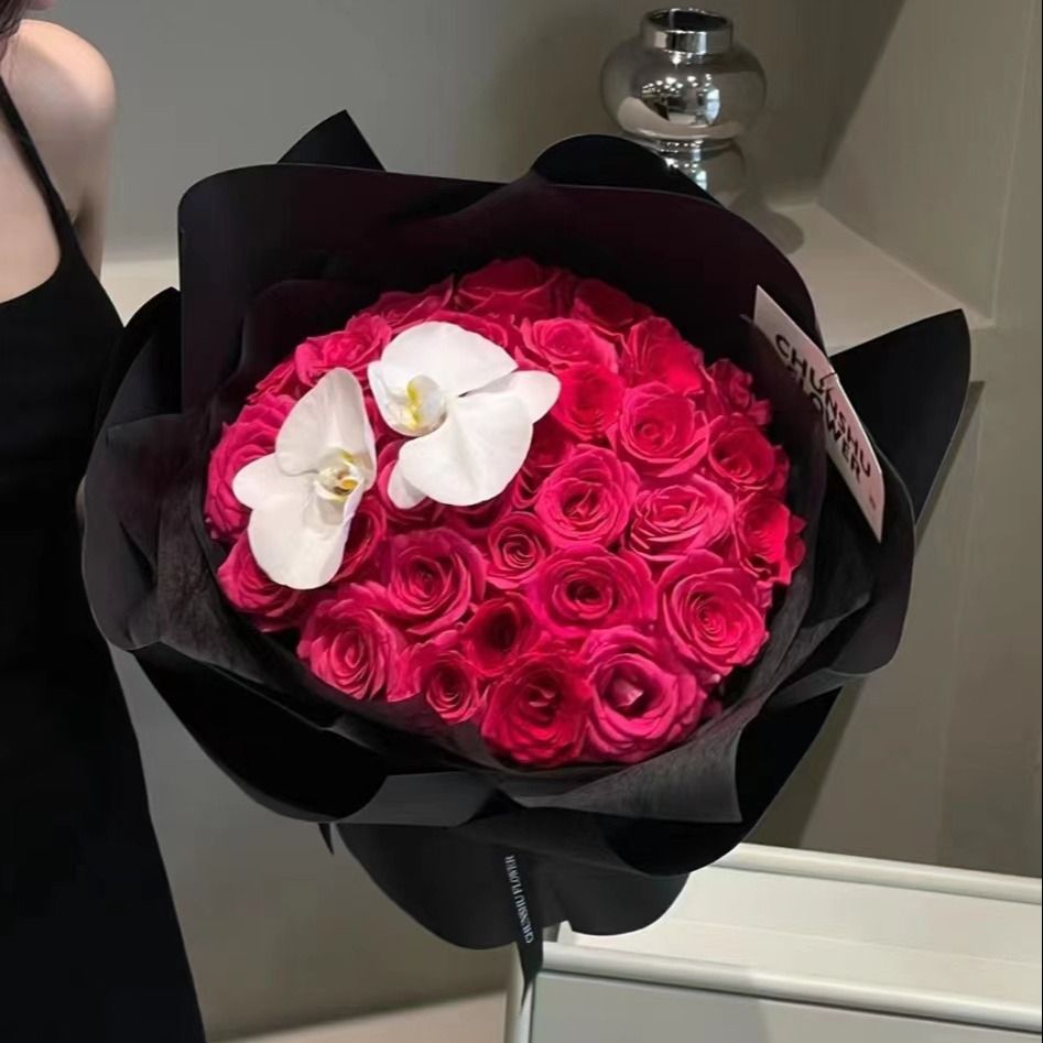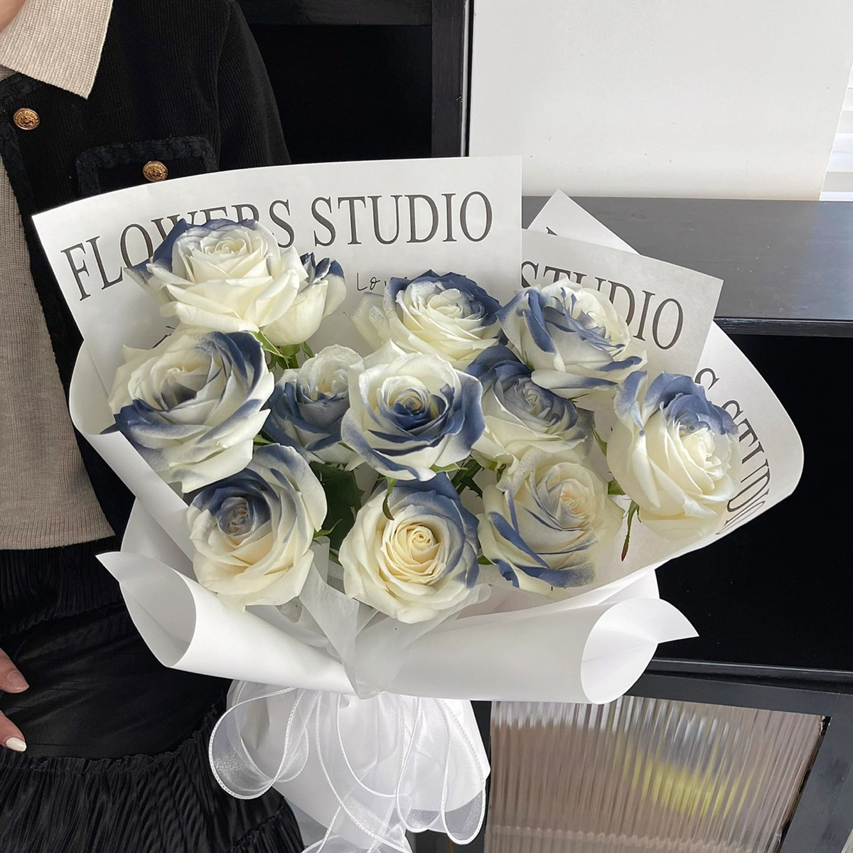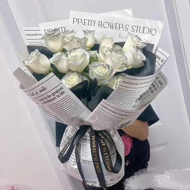 F126 【纸上暗香】渐变黑边白玫瑰花束 Paper Noir Gradient black border white rose bouquet