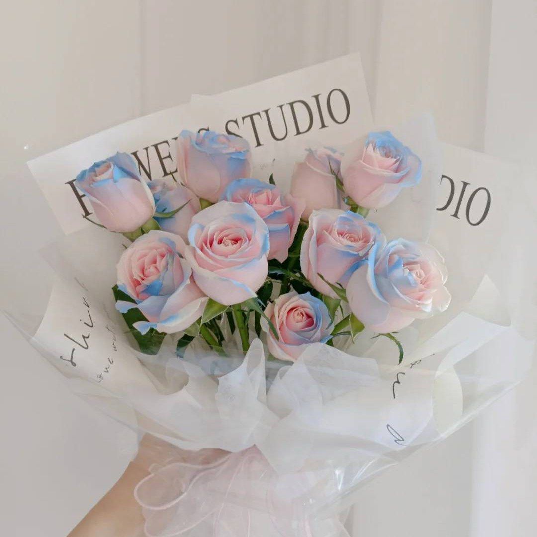 F121 11支蓝粉人鱼姬玫瑰花束11 blue and pink mermaid rose bouquets