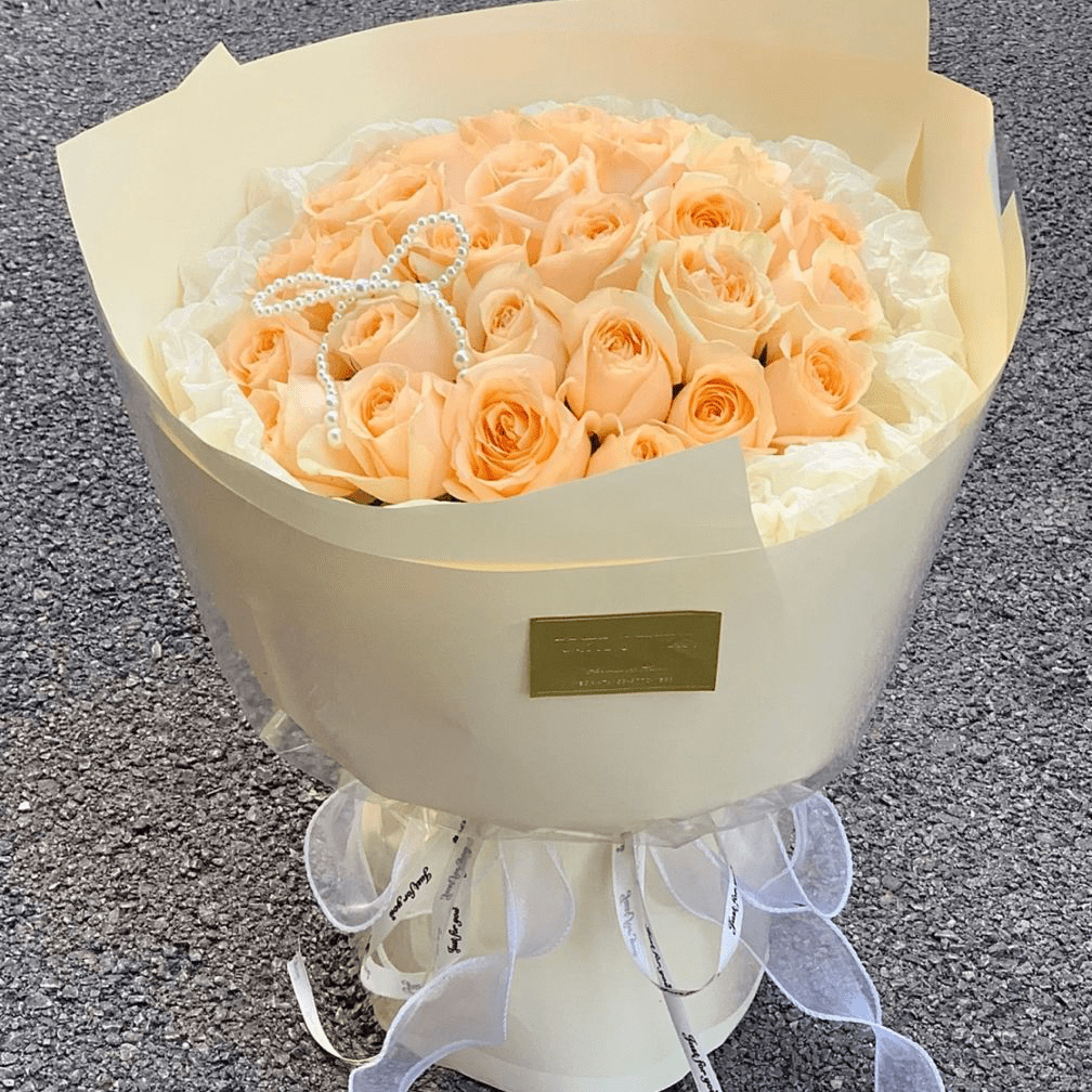F118 淡黄色香槟黄玫瑰花束Light yellow champagne rose bouquet