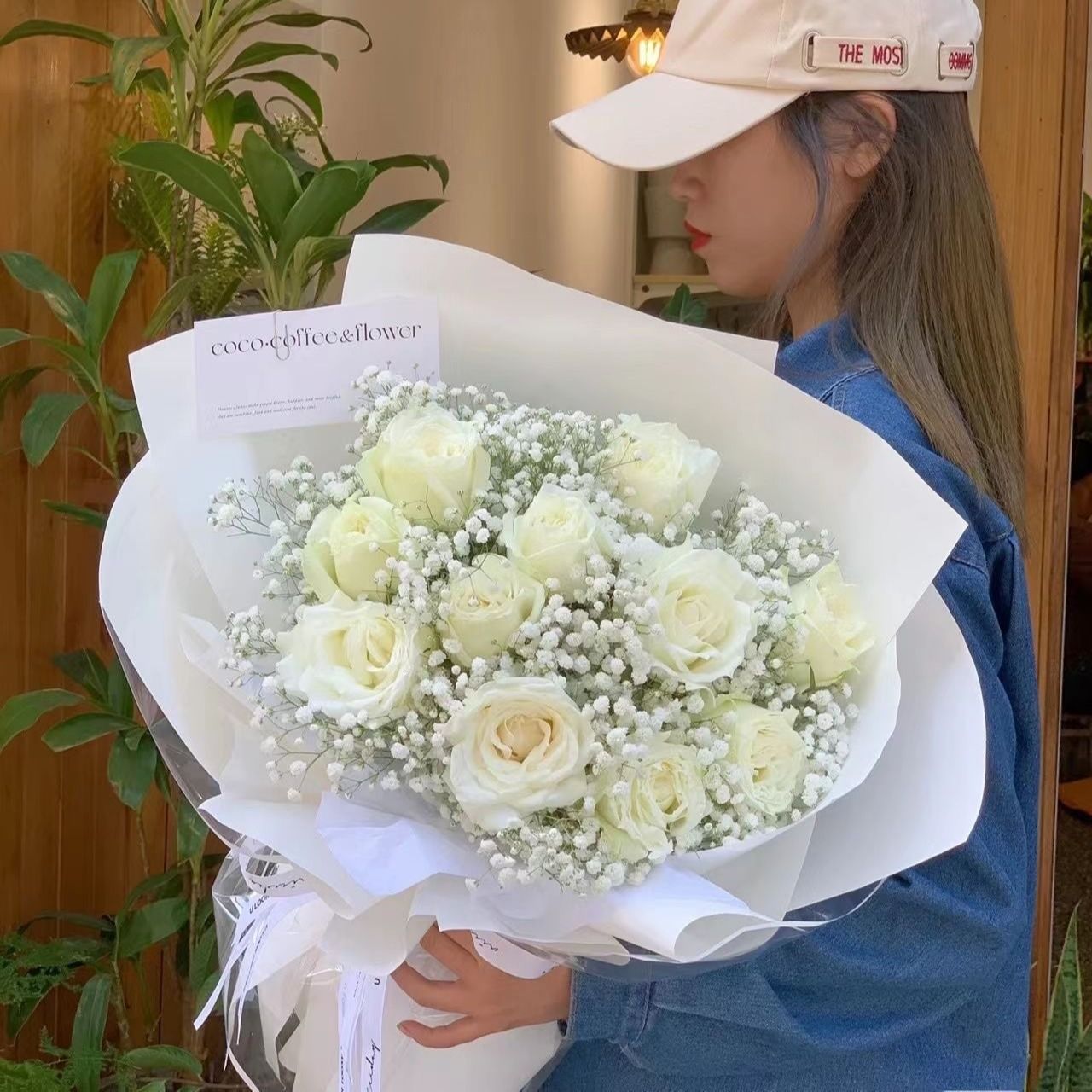 白玫瑰鲜花抱抱桶White roses flower basket