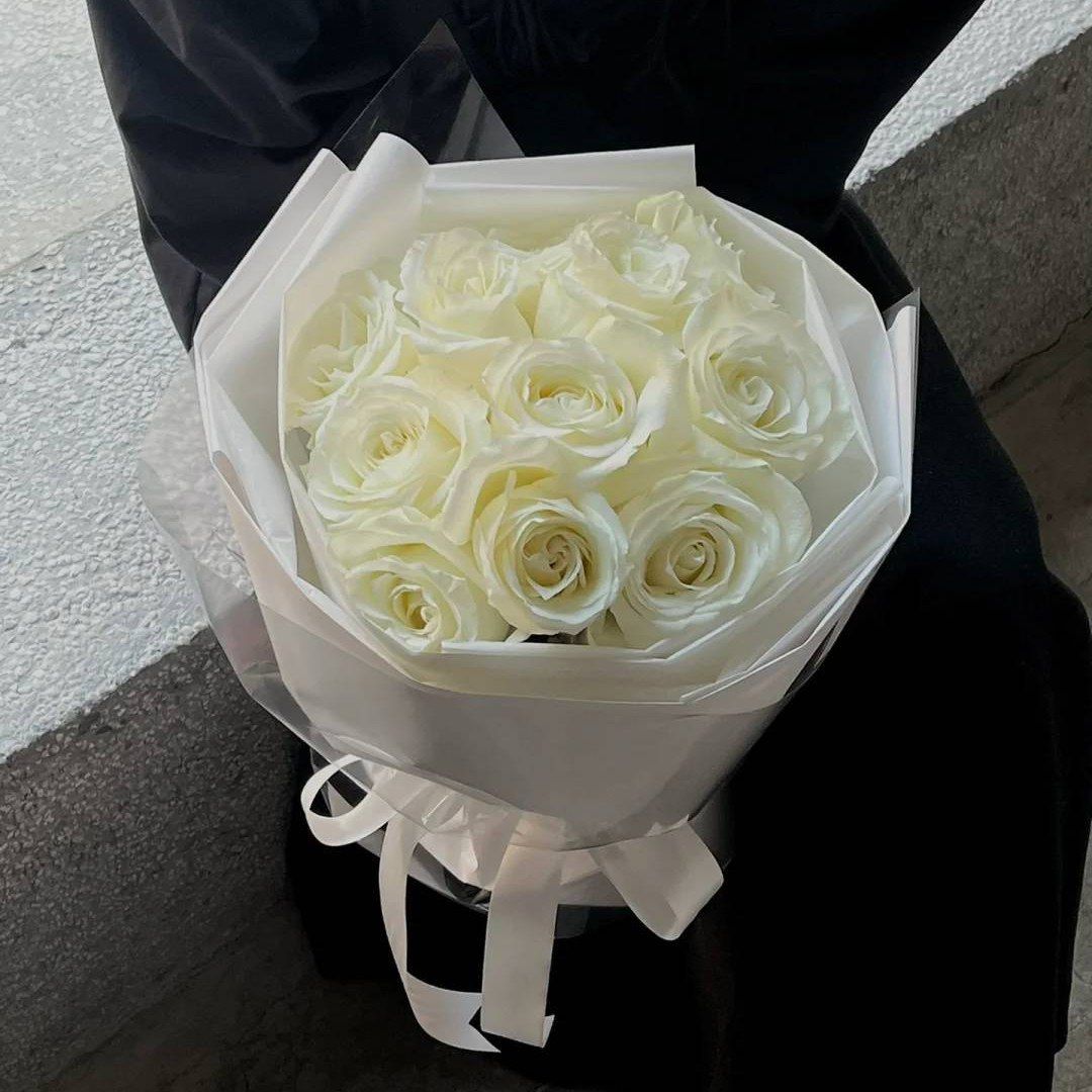 F117 11支白玫瑰加满天星花束11 white roses and baby’s breath bouquet