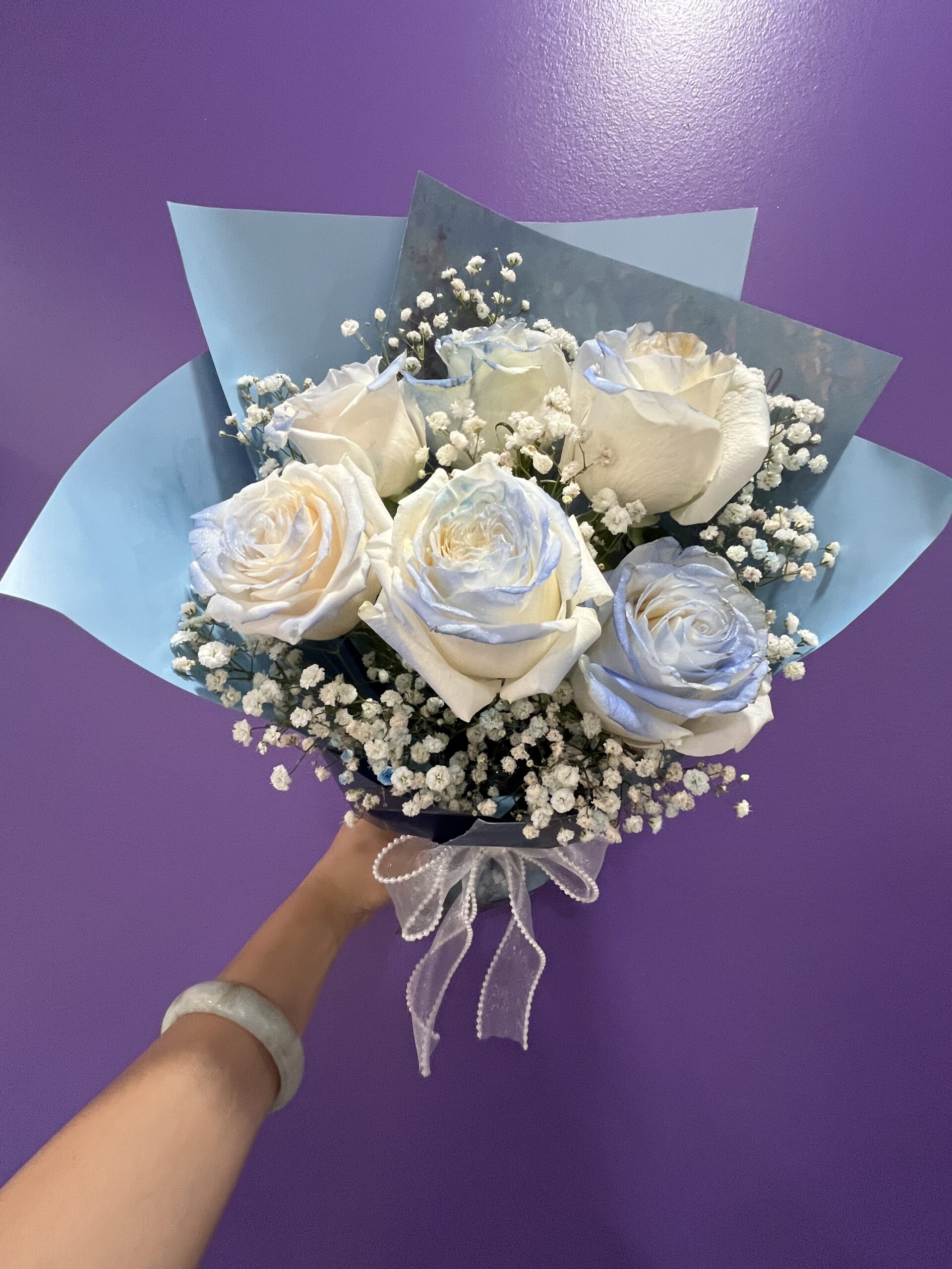 F110 6支喷色蓝玫瑰小花束Small bouquet of 6 spray blue roses