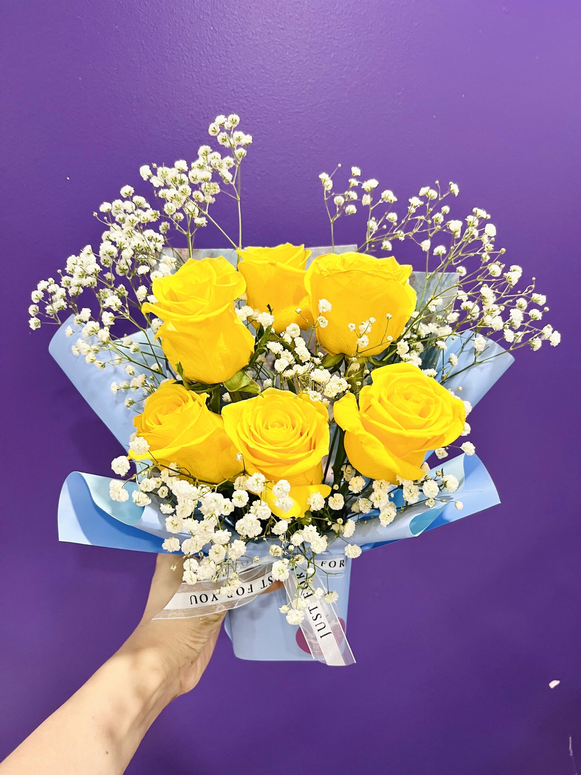 F109 黄玫瑰加满天星花束Yellow roses with baby‘s breath