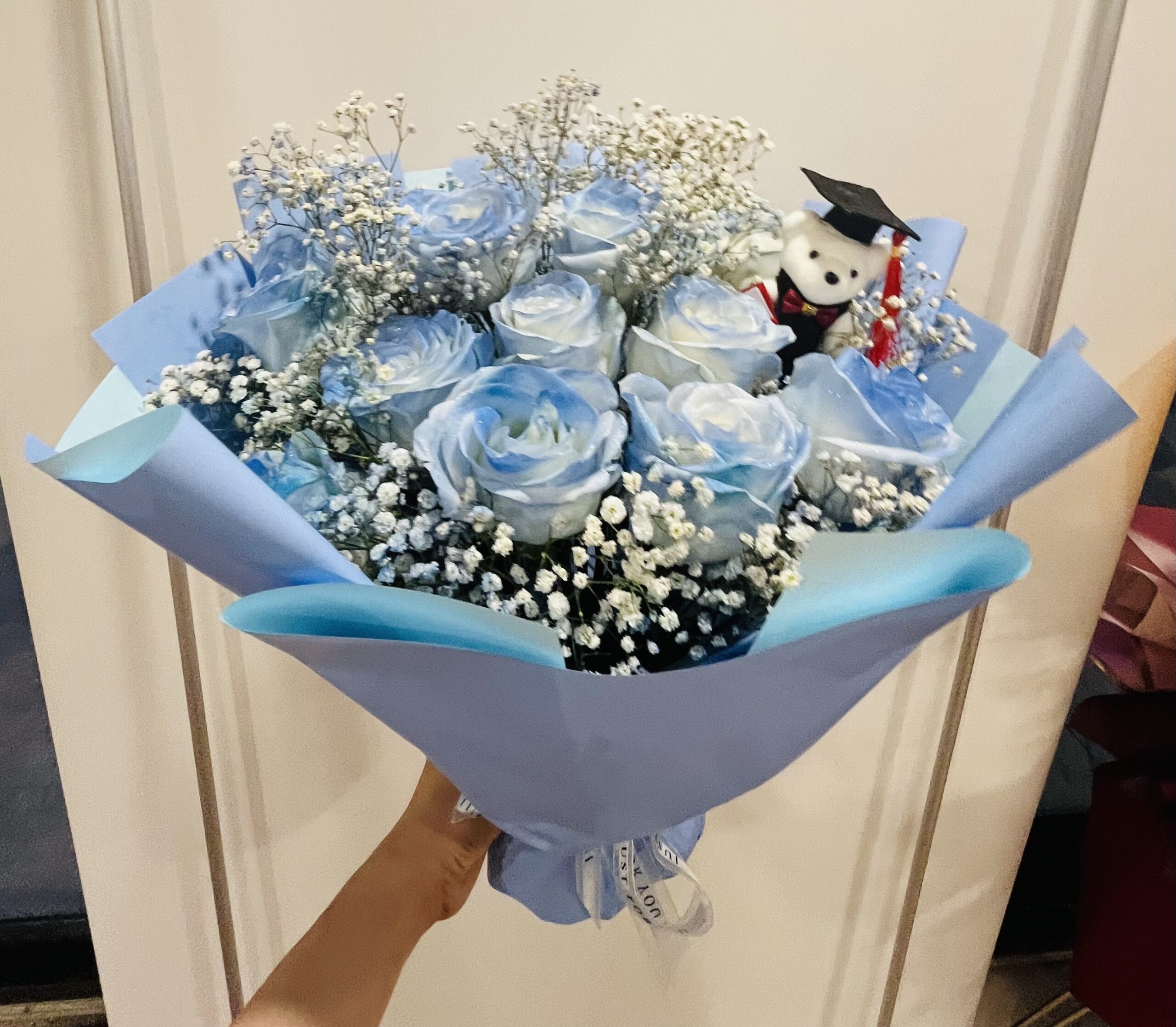 F107 蓝色玫瑰毕业礼花束Blue Rose Graduation Bouquet